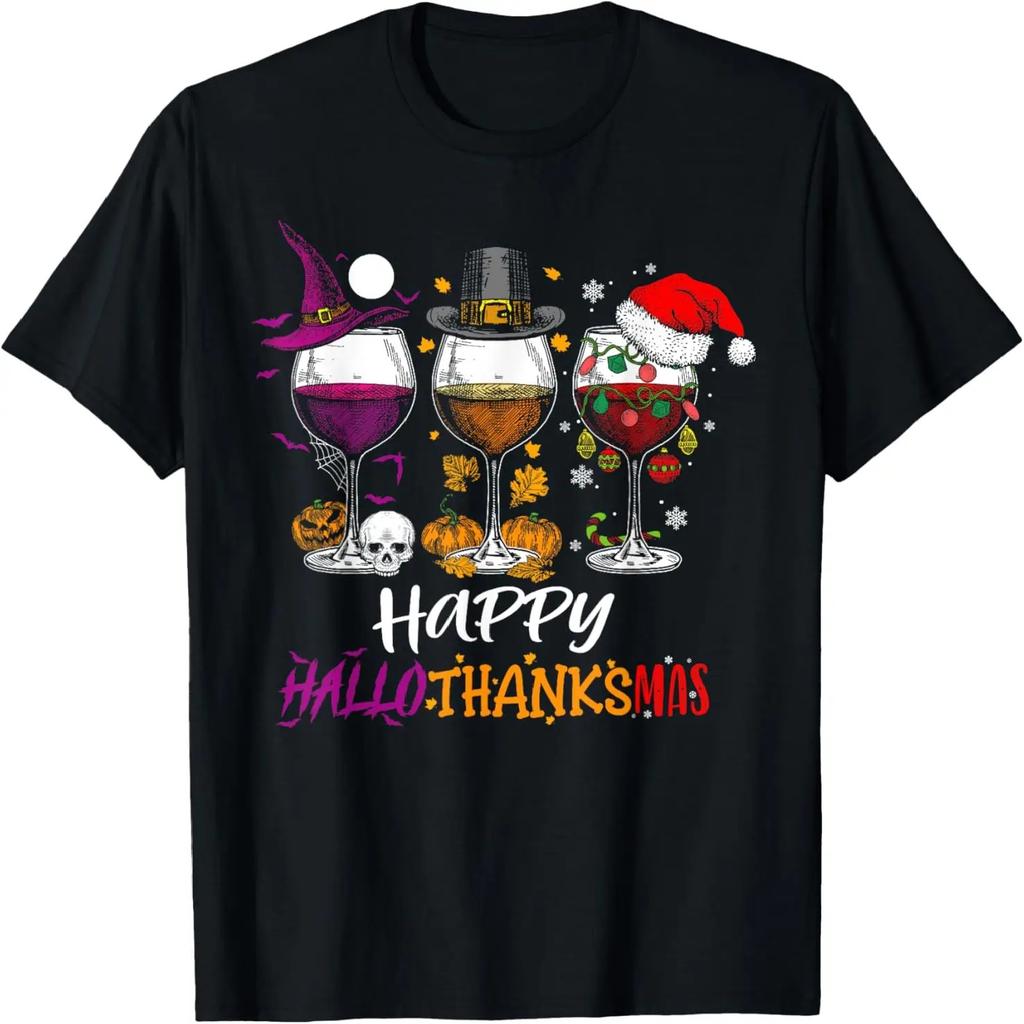 Frohes Hallothanksmas Halloween Wein Erntedankfest Weihnachten T-Shirt