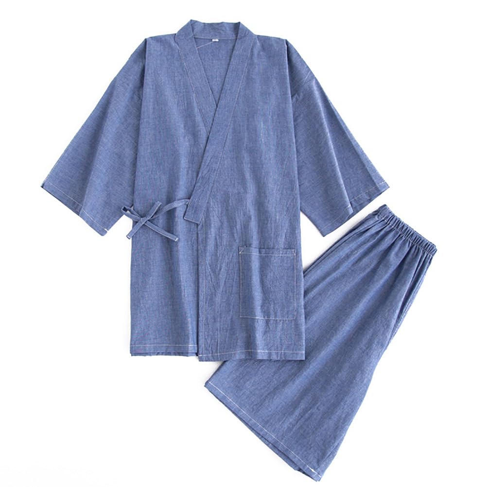 Herren Samue Kimono mit Dreiviertelärmeln, Baumwolle und Leinen, Japanisches Pyjama-Set mit Taschen, Perfekt für die Arbeit oder als Loungewear, Sommer Kimono (blau