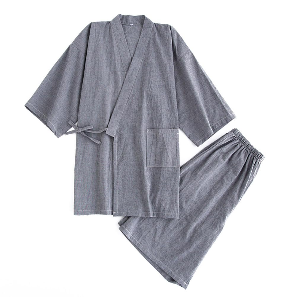 Herren Samue Kimono mit Dreiviertelärmeln, Baumwolle und Leinen, Japanisches Pyjama-Set mit Taschen, Perfekt für die Arbeit oder als Loungewear, Sommer Kimono (Dunkel