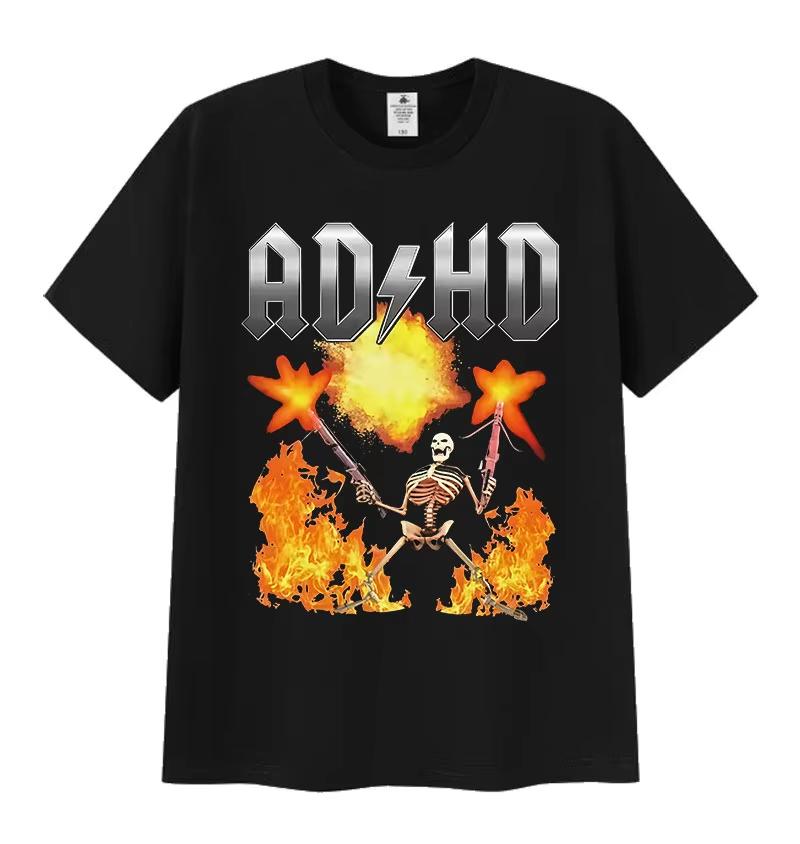 Lustiges ADHD Skelett Autismus Meme Grafik T-Shirt Psychische Gesundheit Bewusstsein Kurzarm T-Shirt Herren Damen Lässige Lockere T-Shirts Oberteile