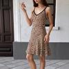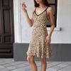 New party simple close-fitting v-neck suspender leopard print dress for women
