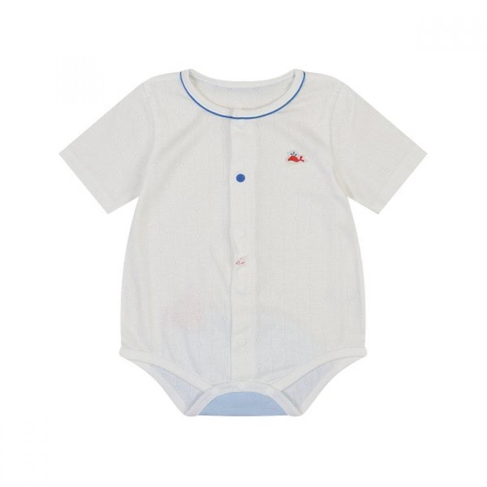 (26 Summer New Product) Wellou 5-Part Bodysuit (07T3 17913) is designed for infants and toddlers, offering comfortable wear. Made of lightweight material, it excels in breathability and stretch for the summer. The 5-part length adequately covers and protects the arms and legs while effectively releasing heat, and it can be easily put on and taken off with snaps. The design includes a belly button cover to protect the newborn's belly.