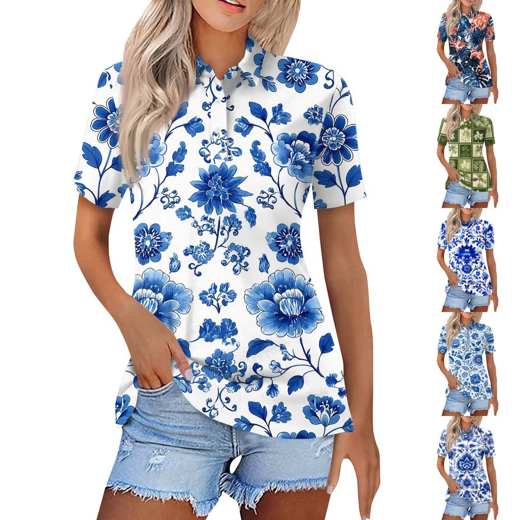 Damenmode Casual Revers Kurzarm Bedrucktes Hemd Damen Button Up Tops