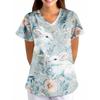 Damen Ostermuster Lockerer V-Ausschnitt Tasche Kurzarm Pflegekraft/ Uniform