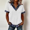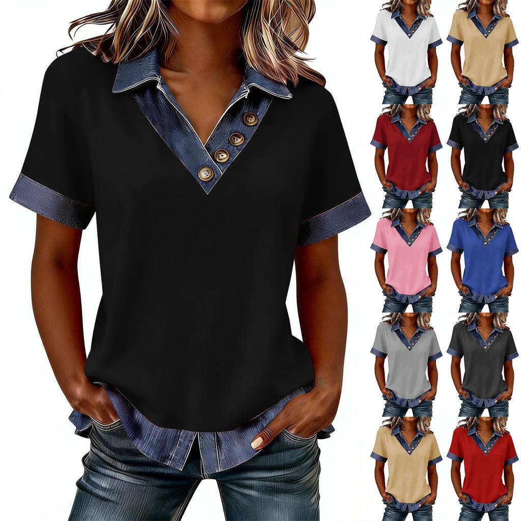 Damenmode Denim-Kragen Patchwork V-Ausschnitt Faux-Zweiteiler Kurzarm Lässiges Oberteil Bitte überprüfen Sie die Größentabelle vor der Bestellung. Wenn Sie sich bei der Größe nicht sicher sind, senden Sie uns bitte eine Nachricht. Eigenschaften: ♥Material: Der Stoff ist superweich und bequem und eignet sich sehr gut für die tägliche Freizeitkleidung.. Das T-Shirt ist atmungsaktiv und elastisch und hält Sie im Frühling und Sommer kühl und komfortabel.. ♥ Passend: Dieses Oberteil wird zu einem vielseitigen Artikel in Ihrem Kleiderschrank, Sie können mit Sport, Sandalen, High Heels. Sie können auch mit Baseballkappe, Sonnenhut, Strandhut usw.. ♥Anlass: Lässige Basic-T-Shirts, sehr geeignet für den Alltag, Freizeit, Verabredungen, Arbeit, Strand, Urlaub, Streetwear, Laufen, Training, Sport oder andere Anlässe.. ♥ Die Oberteile zeichnen sich durch eine entspannte Passform und ein entspanntes Design aus, sodass sie leicht mit Jeans, Shorts, Leggings, Jogginghosen, Jogginghosen oder Röcken kombiniert werden können. Es ist perfekt für Frühling, Sommer, Herbst und Herbst. Produktinformation: :/Frühling/Winter/Sommer Geschlecht:Damen-Anlass:Tägliche Fitness:Passt der Größe entsprechend Dicke:Standardanleitung zum Waschen:Handwäsche kalt, zum Trocknen aufhängen oder flach auslegen. Was Sie erhalten:1XWomen Oberteil