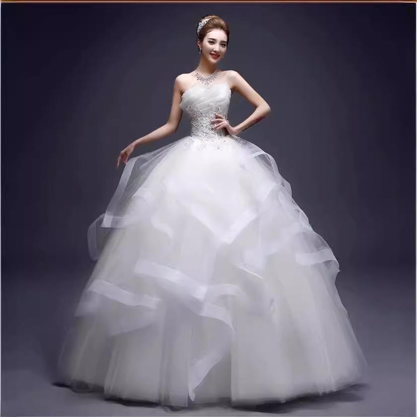 Trägerloses Ballkleid im koreanischen Stil: Schlank geschnittenes & bodenlanges Umstandsbrautkleid für Übergrößen