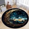 Crystal Velvet Astrology Moon Stars Round Rug, Celestial Print Non Slip Washable Floor Mat for Living Room, Bedroom, Home Decor