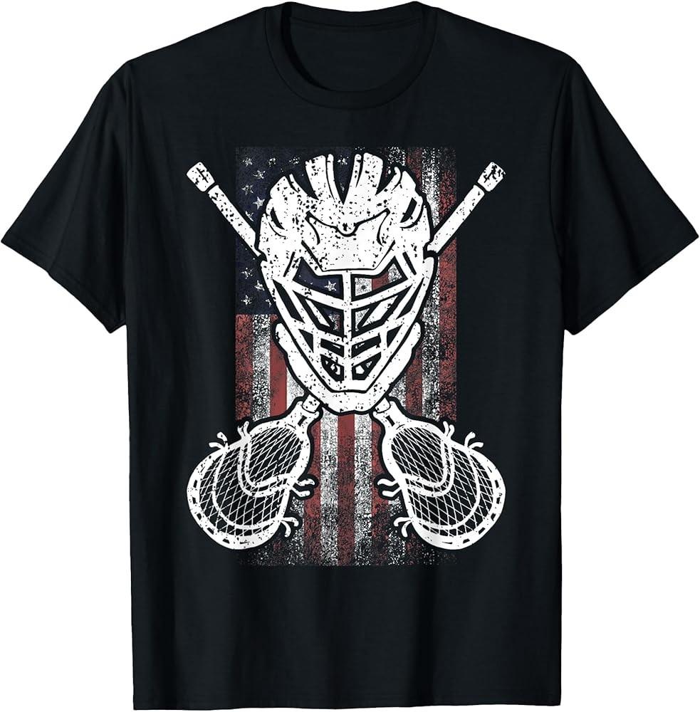 Lacrosse American Flag Stick and Helmet Funny Gift T-Shirt Unisex T-Shirt