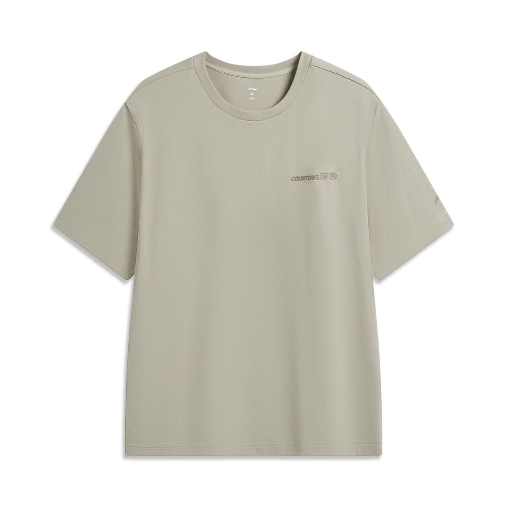 Li Ning Outdoor CF Moisture Wicking Cool Round Neck Short Sleeve T-Shirt Men tops Brown Gray ATSW031-5