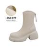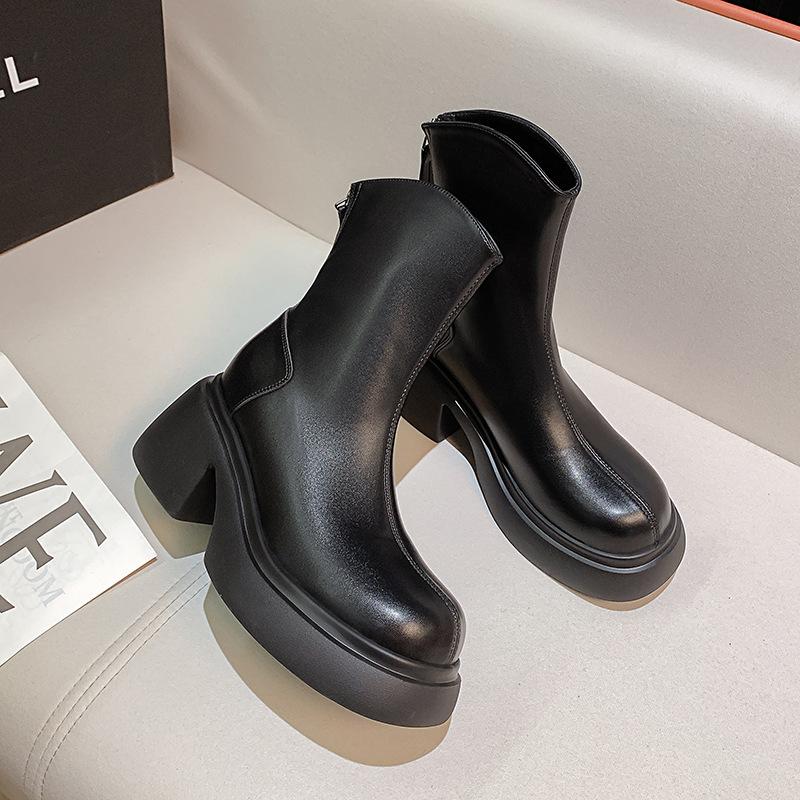 Autumn and winter new thick-soled Martin boots women's leather short boots high-heeled V-mouth small women's height-increasing and thin boots