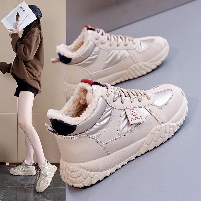 Fleece warm high-top cotton shoes women's new winter versatile thickened large cotton casual sports shoes K