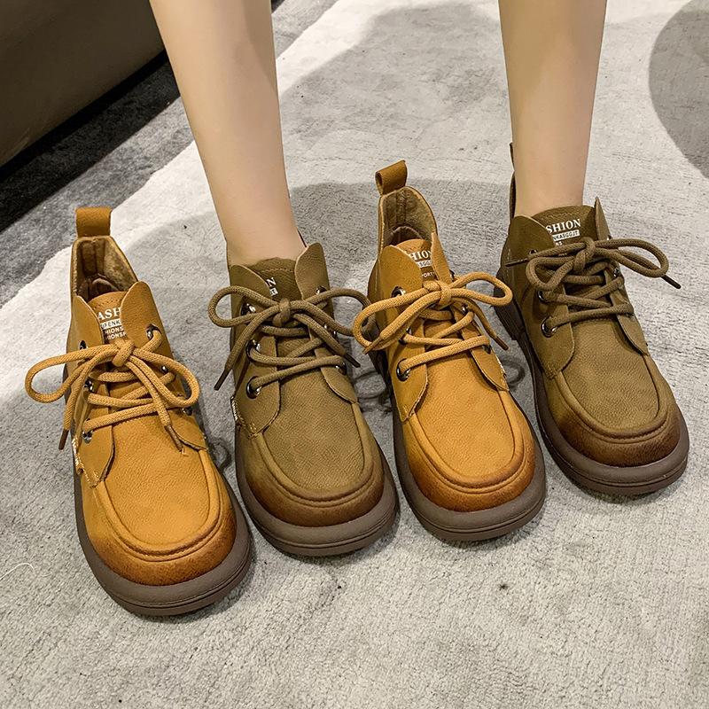 Retro Martin boots autumn and winter new British style polished round head short boots lace-up low-heeled casual boots