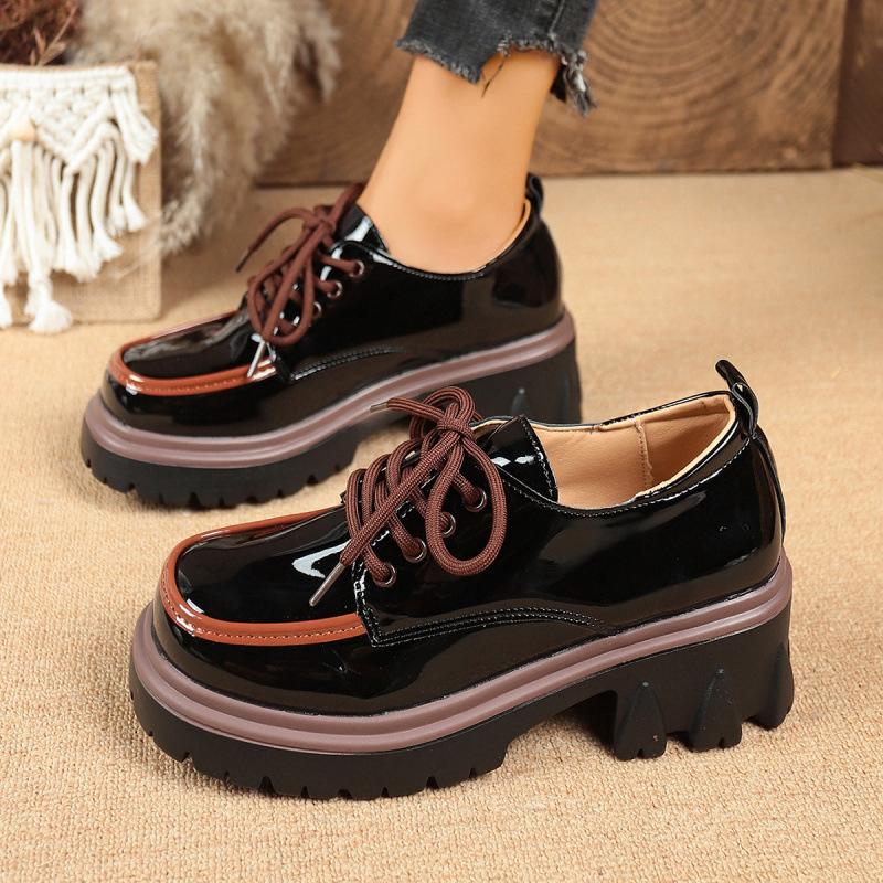 Large size color matching small leather shoes college style thick sole heightening lace-up