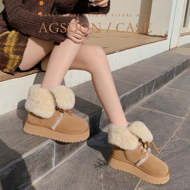 Augustine snow boots winter new velvet thickened lace-up short boots folded two wear platform cotton shoes