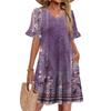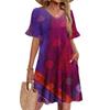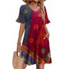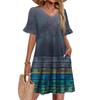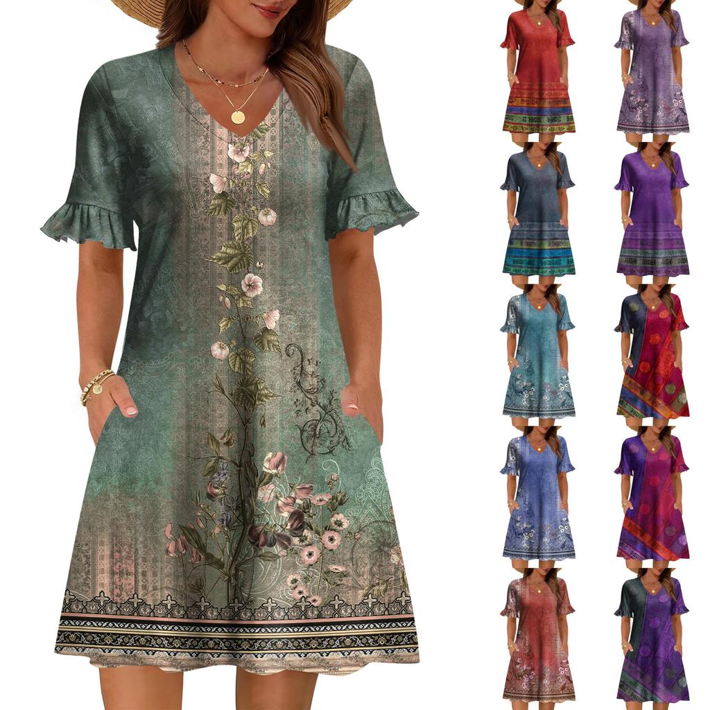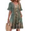Damen A-Linie Sommerkleid Kurzarm V-Ausschnitt Bedrucktes Kleid Mit Taschen