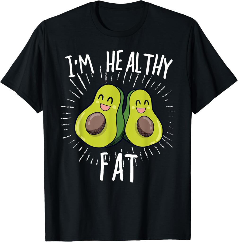 Funny Avocado Im Healthy Fat Graphic Tee Men Casual Crew Neck Cotton TShirt