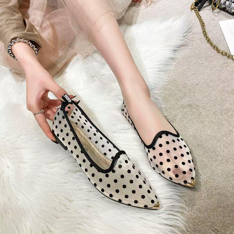 Neue Damen Sommer Flache Sohle Gepunktetes Netzschuhe Weiche Sohle Rutschfest Flach zum Hineinschlüpfen Spitze Zehe Nude Schuhe Ballerinas