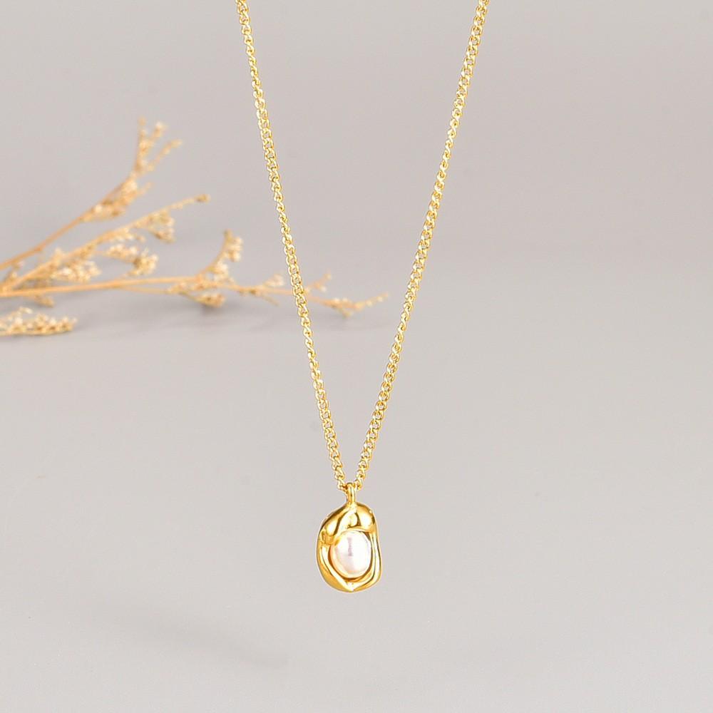 Design light luxury Erbsen Süßwasserperlen Anhänger Halskette kompakt goldene Bohne Schlüsselbein Kette