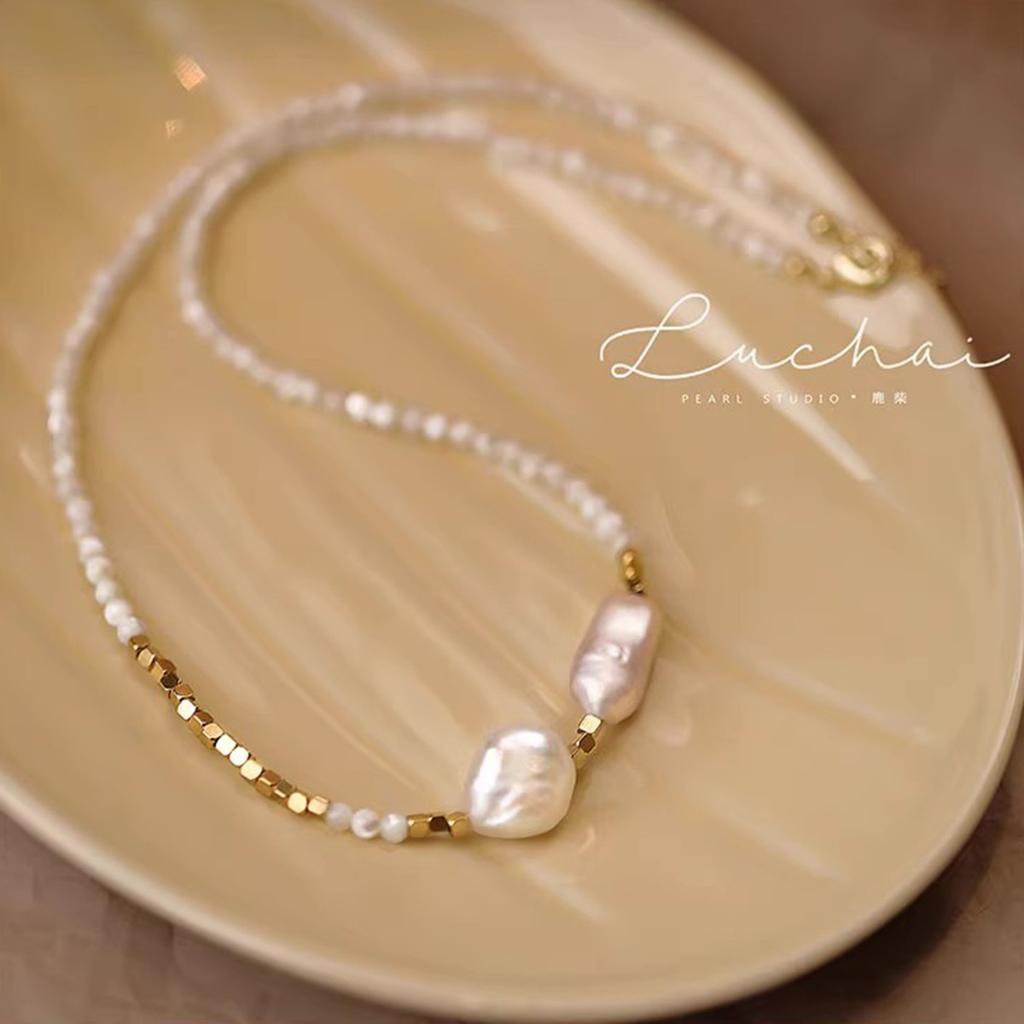 Barock-Sonderform Weißperlenkette Damen Neue beliebte Nischen-Muschelperlen-Schlüsselbein-Kette Damen