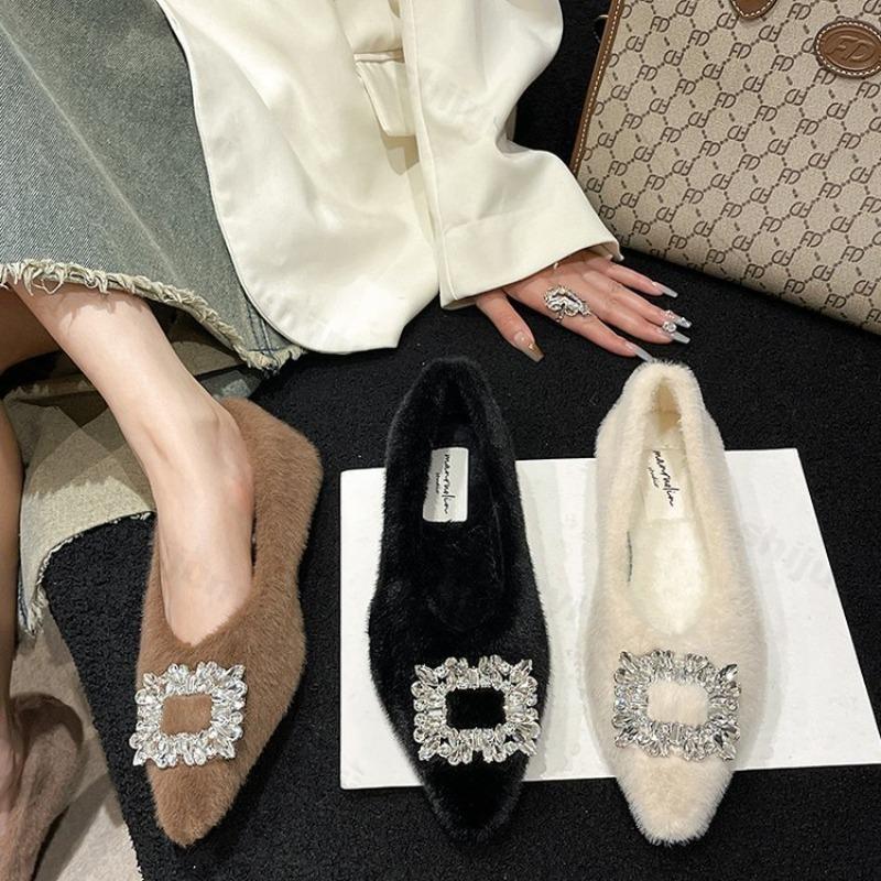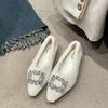 Damen flache Schuhe Winter Elegant spitz Plüsch Sexy niedriger Absatz flauschig Freizeitschuhe Bequem Outdoor Strass Modeschuhe