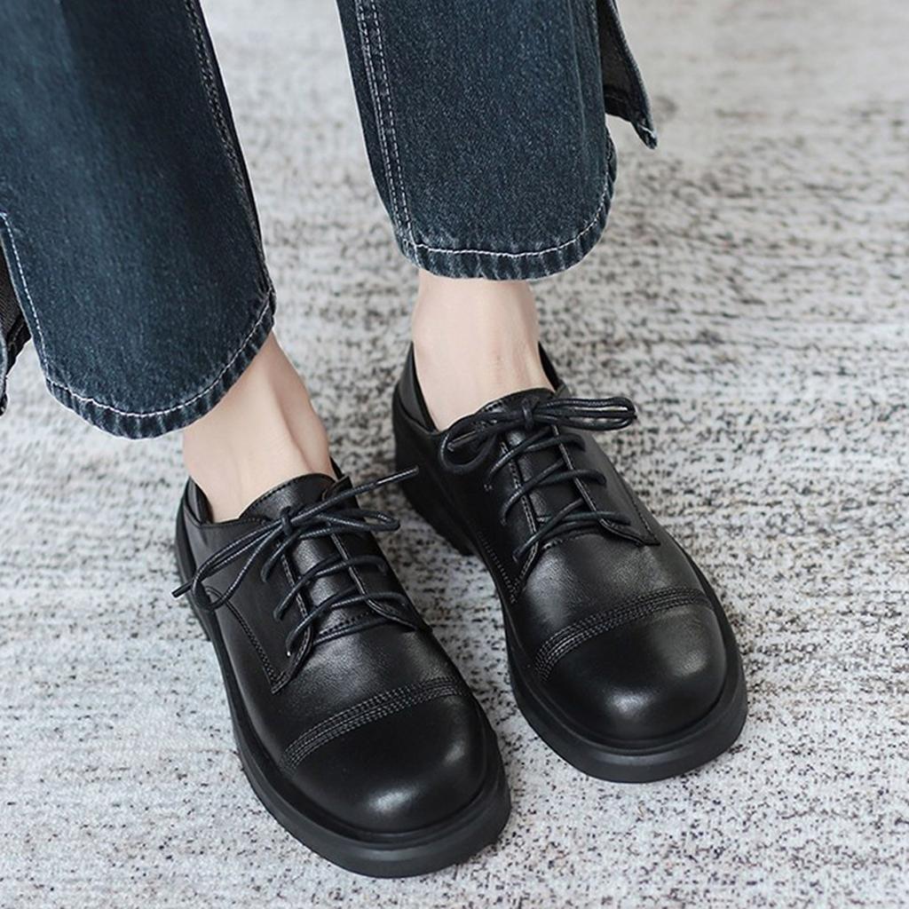 Mode Damen Einfarbige Kunstleder Quadratische Absätze Schnürung Runde Spitze Freizeitschuhe Damenschuhe Flip-Flops