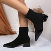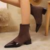 Vintage Patent Leather Pointed Toe Thick Heel Ankle Boots Women Autumn Elastic Suede Short Boots Woman's Winter Shoes