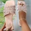 Summer Women Slippers Outdoor Rhinestone Slippers Fashion Non-Slip Beach Shoes Comfortable Square Heel Sandals Slides Women