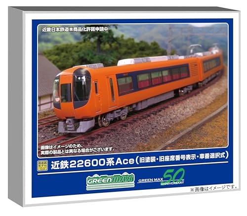 Greenmax N Gauge Kintetsu 22600 Series Ace Train, Old Paint, Old Seat Number Display, Selectable Car Number, Basic 4-Car Set, Powered, Model Train, 32