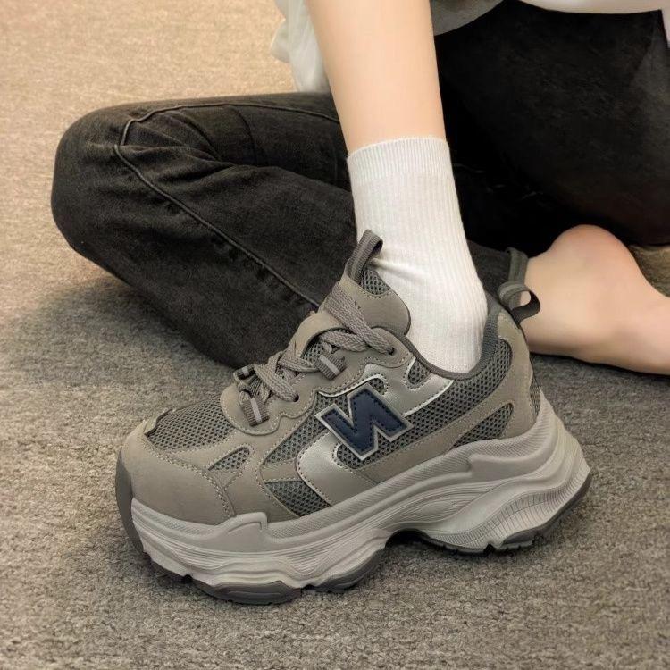 22 Frühling dicke Sohle Retro Sportschuhe Innen höhenverstellbar Dad Shoes zeigen Füße kleines Netz Freizeitschuhe