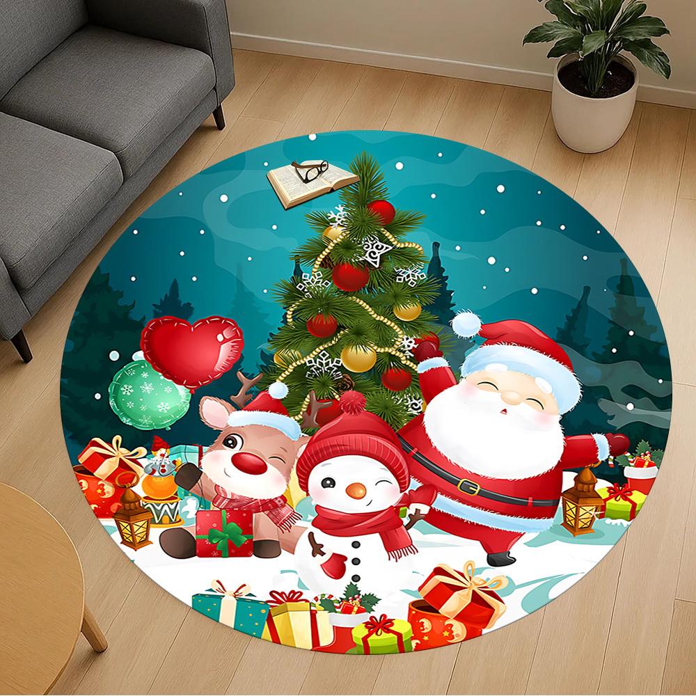 1 Stück Weihnachten Weihnachtsmann Runder Stuhlmatte Teppich - Rutschfest, Fußmatte für Büro, Schlafzimmer und Innenraumdekor c1125230