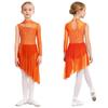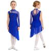 Complete Competition Lyrical Costume for Girls: Features Asymmetrical Design, Mock Neck, Mesh & Rhinestone Details