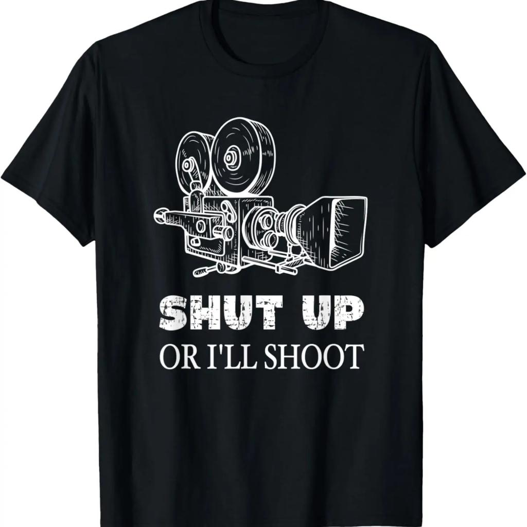 Halt die Klappe oder ich schieße Retro Vintage Filmkamera Filmemacher T-Shirt,Bequeme reine Baumwolle
