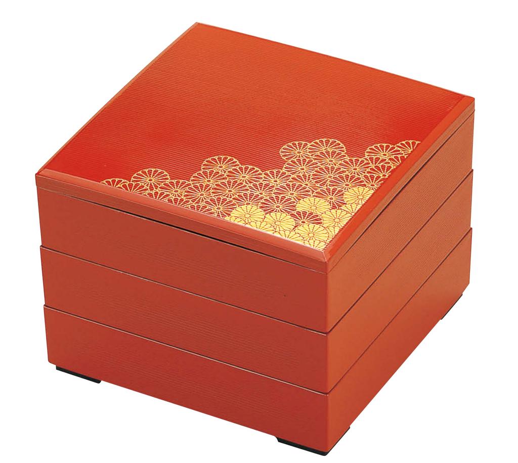 Wakaizumi Rot mit Wilden Chrysanthemen Design 3 Lackware, 7-Zoll Tausendlinien-Box, (Schwarzes Interieur), Tiers, H-159-2A