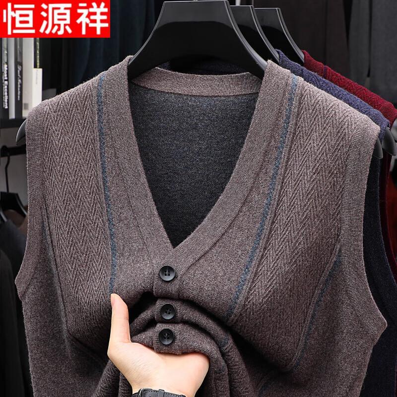 Hengyuanxiang Men's Pure Wool V-Neck Cardigan Vest