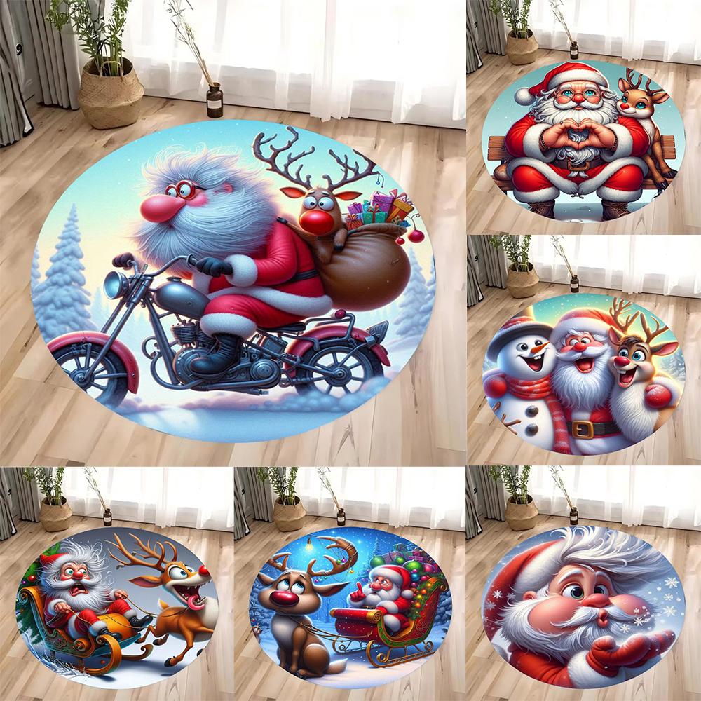 Weihnachtsmann Runder Teppich Wohnzimmer Schlafzimmer Matte Festliche Atmosphäre Dekorierter Weihnachtsbaum Heimteppich Dekoration