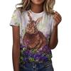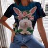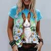 Rabbit Print Women's Top Crew Neck Short Sleeve Comfortable T-Shirts Women’s