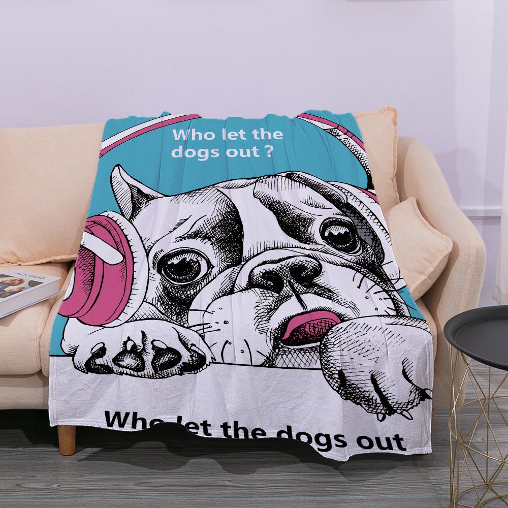 Cute Ultra-Soft Flannel Printed Blanket Plush Throw Nap Cover for Sofa Bed Couch King Queen Full Size French Bulldog Dog
