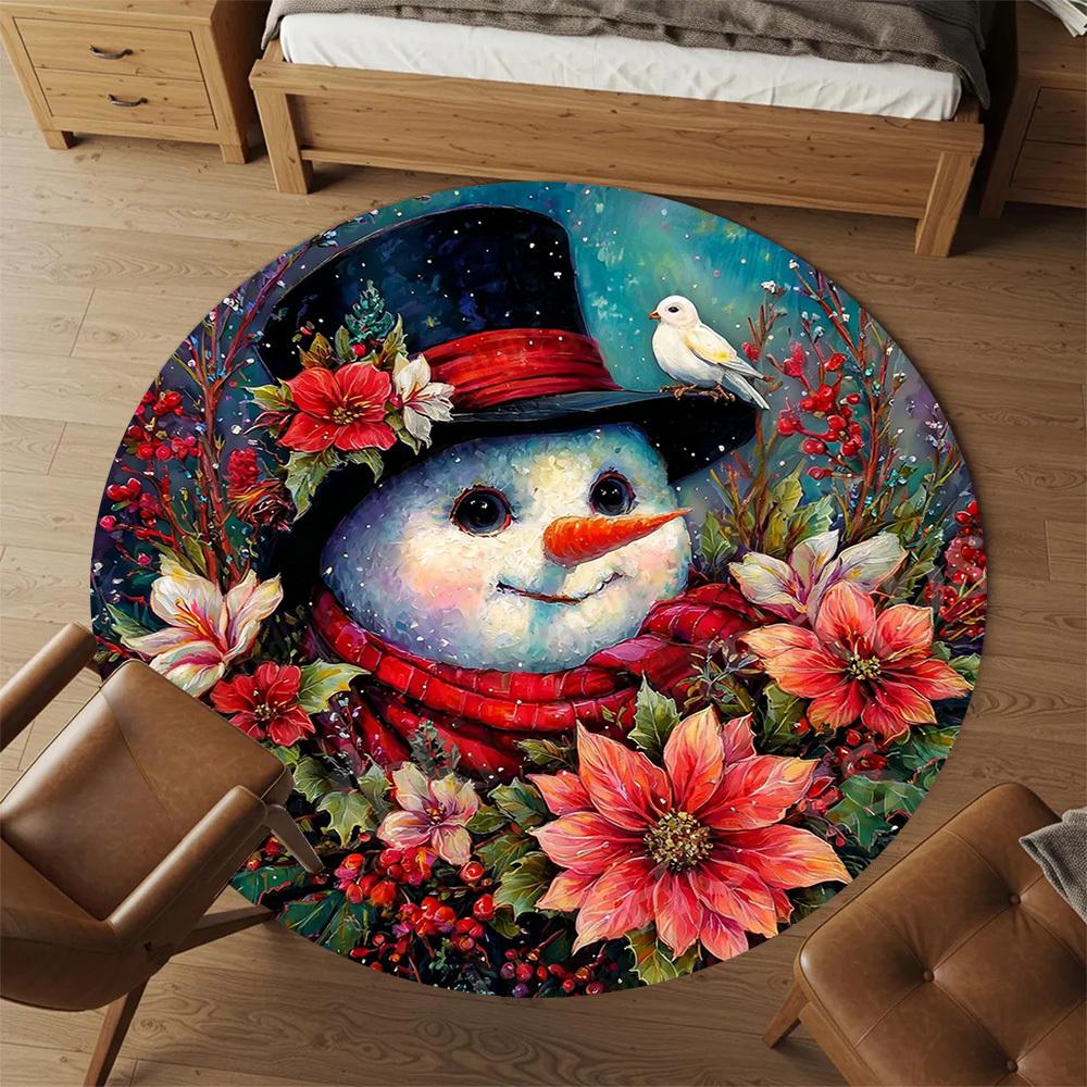 1PC snowman flowers Office Round Area Rug, Under Office Chairs Bedroom Living Room Home Decor,Carpet for Office, -1110245
