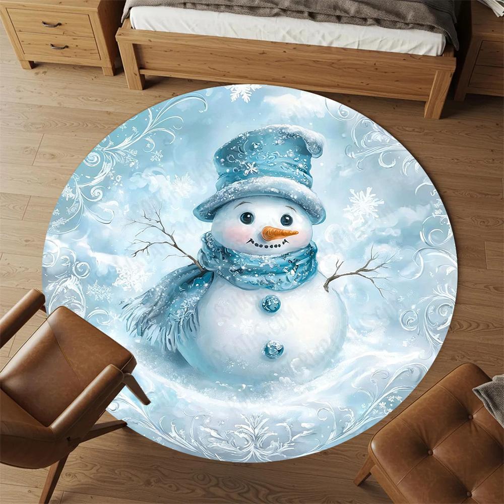 1PC snowman winter Office Round Area Rug, Under Office Chairs Bedroom Living Room Home Decor,Carpet for Office, -1110223