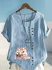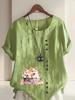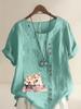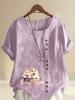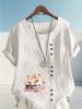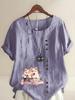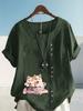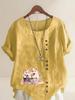 Women's Fashion Couple Dog Print Round Neck Short Sleeve T-shirt Summer Casual Cotton Linen Graphic Shirt Leisure Loose Blouse Tops