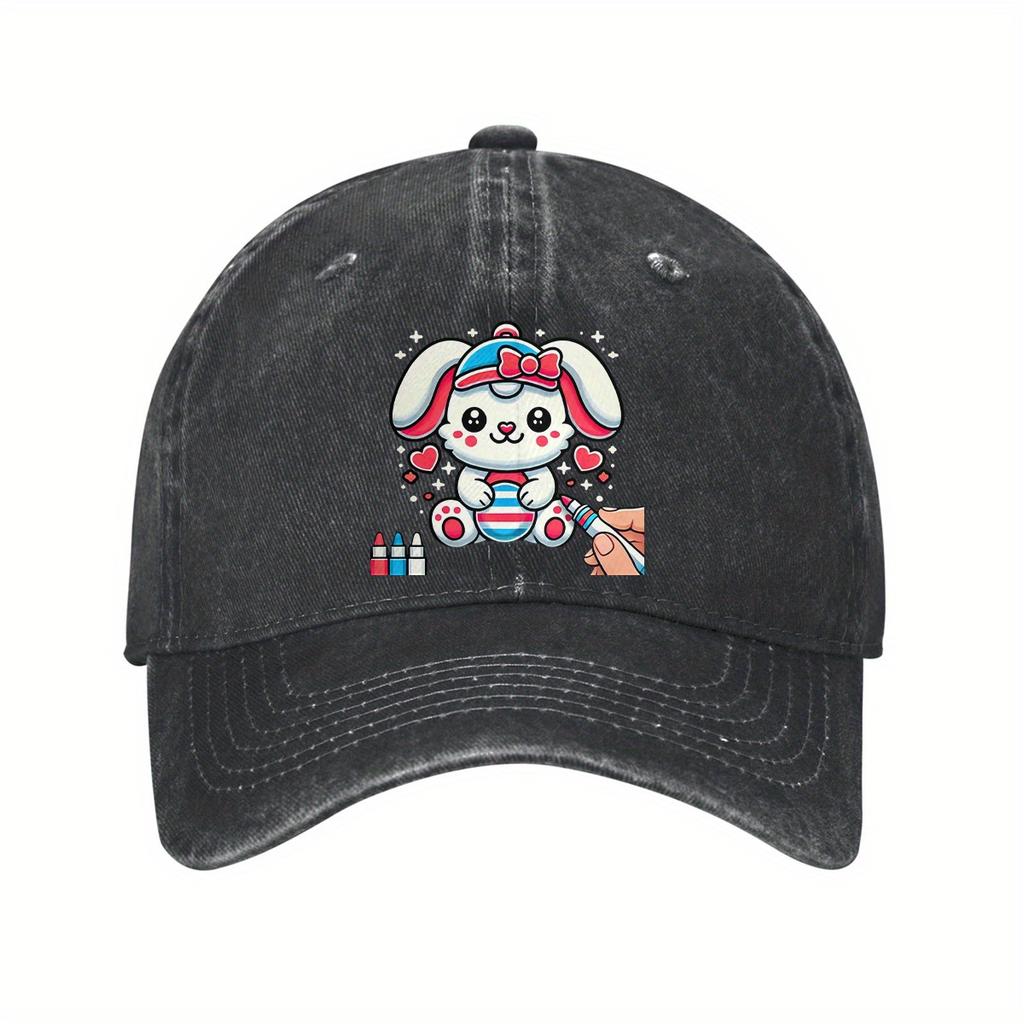 Cute Cartoon Bunny Painting Easter Egg Baseball Cap Adjustable Vintage Cotton Casual Hat for Unisex Adults