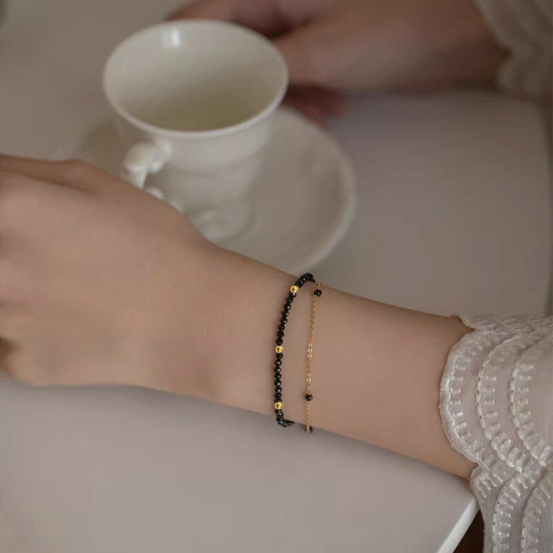Jacques Schwarzer Spinell Perlen Kristall Edelstein Goldkugel Armband