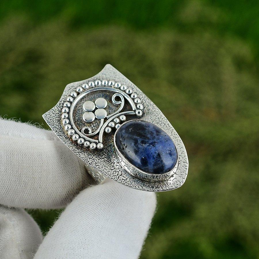 Freundschaftstag Sale 925 Silber Sodalith Edelstein Handgefertigt Statement Bezel Ring