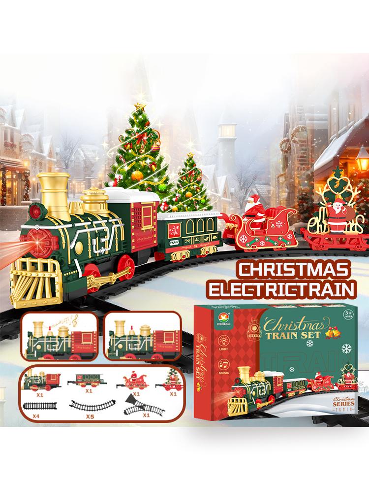 Non-Toxic Christmas Tree Electric Train Tracks Set Santa Claus Cargo Cars With Xmas Sounds Lights Toys For Adult New Year Gift