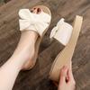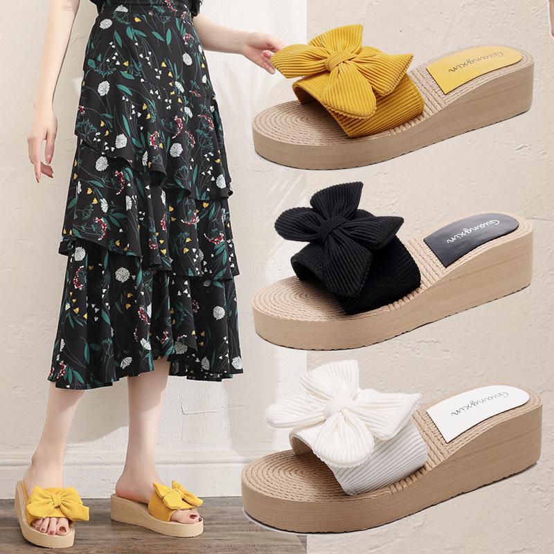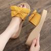 Schlüpfen Sie in mühelosen Sommerstil mit diesen lässigen Keilsandalen, perfekt für Ausflüge zum Strand und sonnige Spaziergänge.. Diese Sandalen sind mit einem leichten EVA-Obermaterial gefertigt und sorgen für einen bequemen Sitz, während sie mit ihrem charmanten Schleifen-Detail einen Hauch von Eleganz verleihen.. Die stroh-inspirierte EVA-Sohle bietet sowohl Strapazierfähigkeit als auch eine entspannte Ausstrahlung und verbessert jeden Ihrer Schritte.. Mit einem dezenten 0,05-Zoll-Absatz bieten diese Flip-Flops genau die richtige Höhe, ohne den Komfort zu beeinträchtigen.. Ideal für Abenteuer bei warmem Wetter, diese Sandalen vereinen mühelos Stil und Praktikabilität.