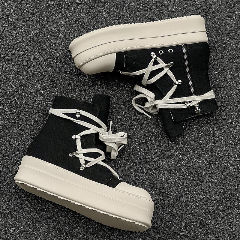 New European and American short boots high-top canvas breathable black and white personalized thick bottom thickening and orgasm
