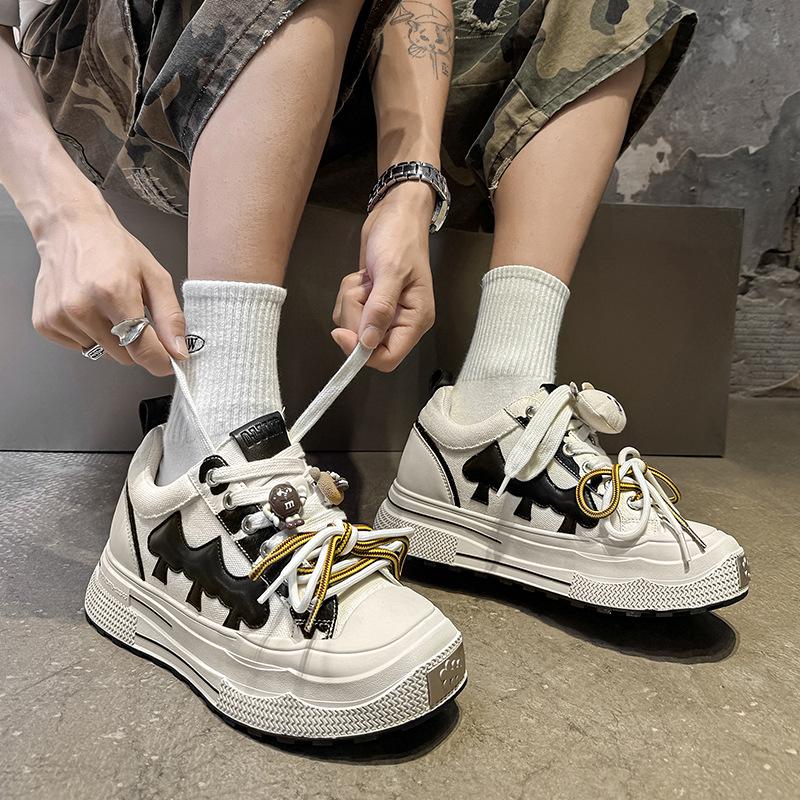 Summer new casual canvas ensemble plum blossom shoes black plum thick sole heightening retro