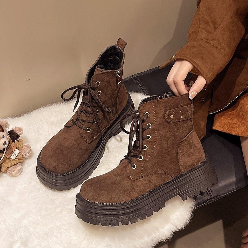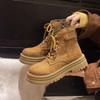 Autumn and winter suede flat Martin boots new British style big head lace-up retro locomotive short boots