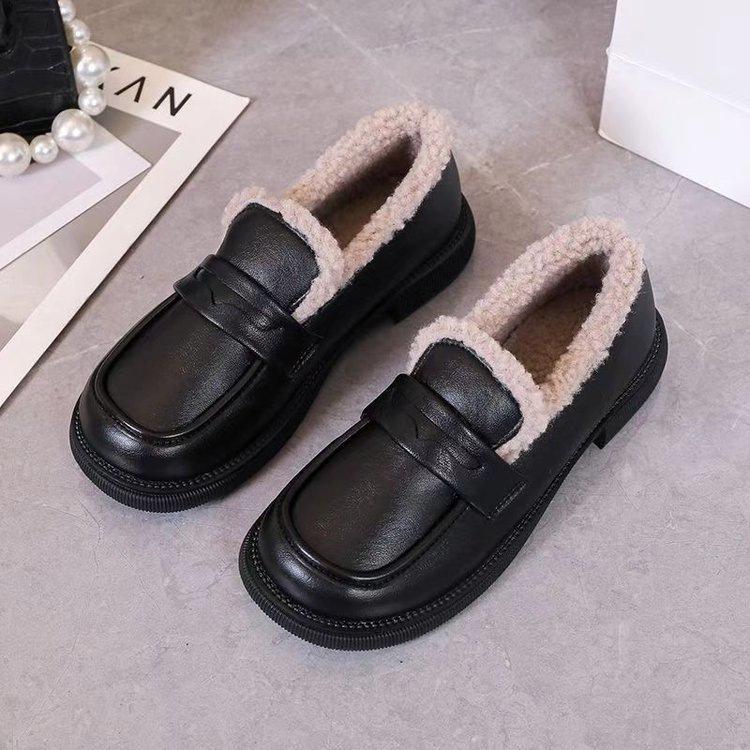 Niedrigabsatz kleine Lederschuhe Herbst und Winter neu dicke Sohle Samt Baumwollschuhe Doudou Schuhe