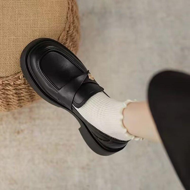 Kleine Goldmünzen neue dicke Sohle Frühling weiche Sohle dicker Absatz weiches Leder Britischer Stil kleine Lederschuhe